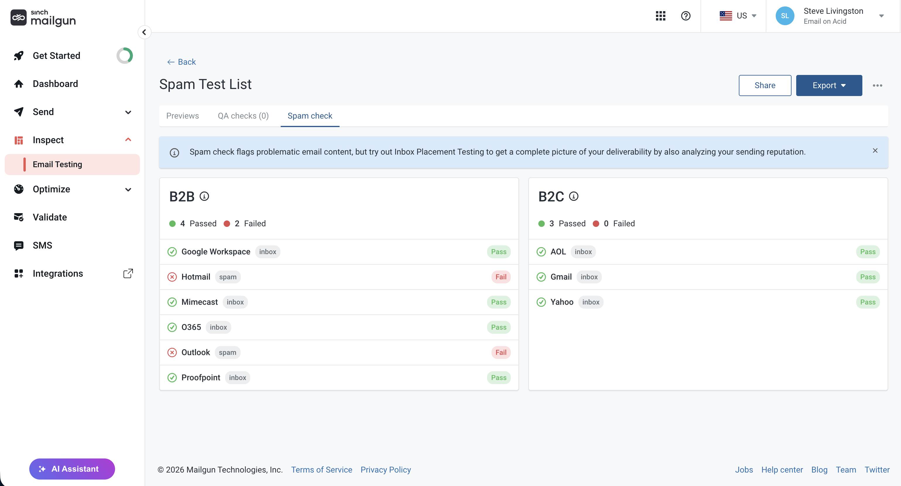 Use Mailgun Optimize if you need a full deliverability analysis.
